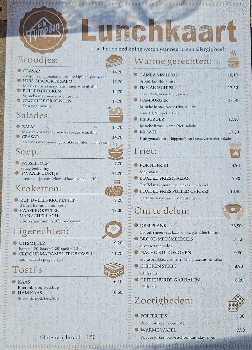 Café Tympaan’s menu offers a delightful mix of comforting and satisfying dishes, perfect for a relaxed meal in Middelburg. The Nacho Cheddar is a standout choice, offering a delicious combination of crisp nachos topped with melty cheese, perfect for sharing or enjoying on your own. For a more substantial bite, the Club Sandwich is a filling and hearty option, stacked with fresh ingredients and served with a side of crispy fries. Those looking for a traditional Dutch dish will enjoy the Uitsmijter, a satisfying plate of fried eggs served over bread with ham or bacon, delivering a comforting and flavorful taste of the region. To finish off the meal, Café Tympaan’s Kaffee makes for a rich and aromatic coffee experience, ideal for unwinding after a savory meal. Whether you’re stopping by for a light snack or a more indulgent meal, the variety and quality of dishes on offer make Café Tympaan a must-visit.